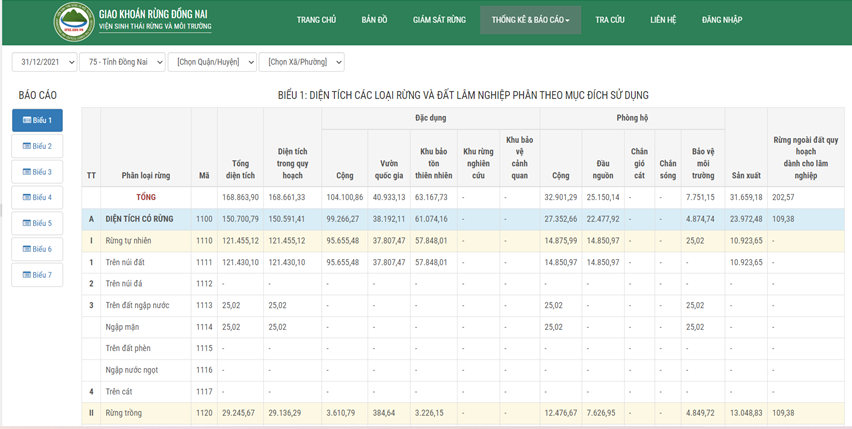 Thống kê báo cáo số liệu hiện trạng rừng